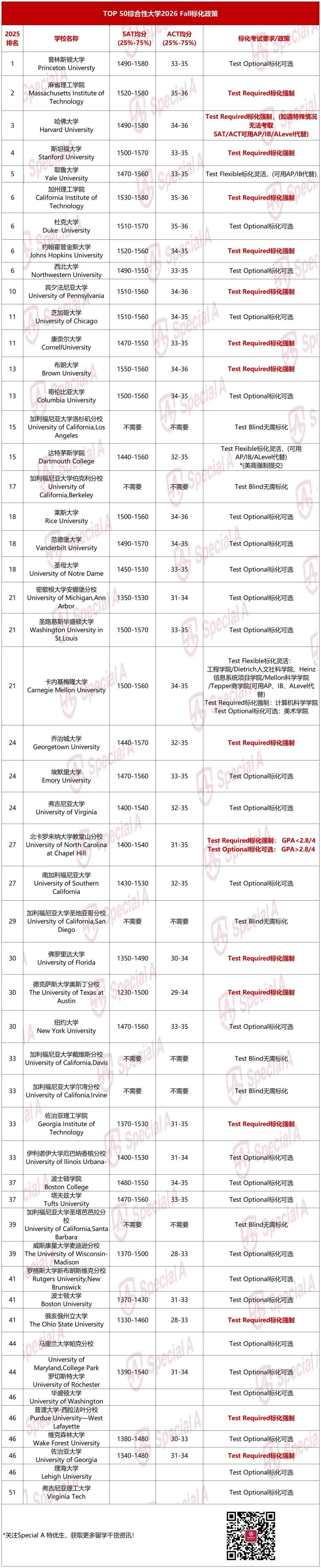 2026 Fall美本标化政策最新汇总来了!多所藤校恢复强制标化,这些TOP 30不看分数!